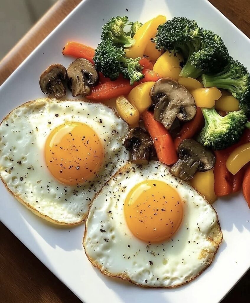 Bright, balanced, and deeply satisfying—this breakfast plate is all about clean energy and bold color. Silky sunny-side-up eggs with golden yolks crown a quick sauté of fresh vegetables, delivering protein, fiber, and essential nutrients in just 15 minutes. Perfect for a nourishing start or a light anytime meal.